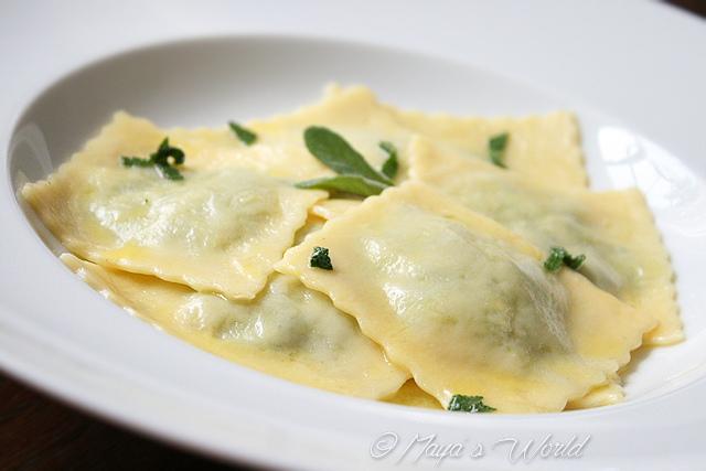 În timp ce apa cu sare fierbe, topiti ceva unt cu un catel de usturoi strivit si salvie tocata.